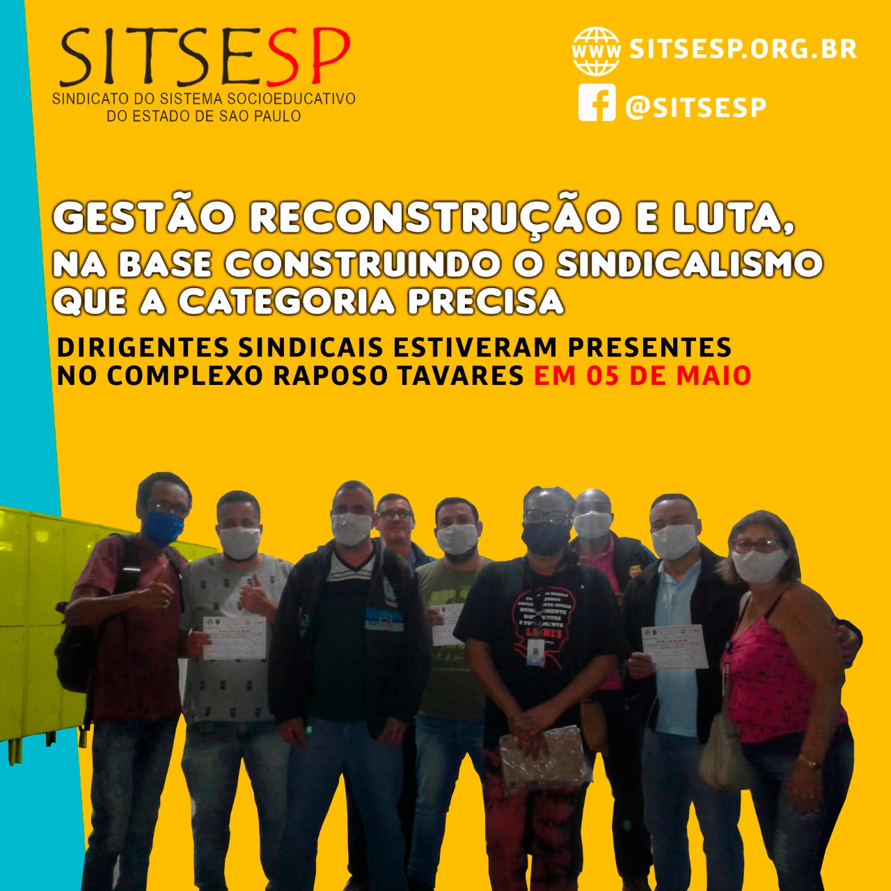 A gestão Reconstrução e Luta vem atuando ao lado da base, tomando medidas de proteção à categoria, exigindo condições de trabalho adequadas para todos os trabalhadores que representa. Nesse sentido, no dia de ontem (05 de maio), os diretores Antônia Souza (Secretária de Saúde do Trabalhador), Rosangela Mariano (Diretora Regional-Sul) e Iure Teixeira (Secretário de Formação), estiveram presentes no complexo Raposo Tavares, localizado na cidade de São Paulo.