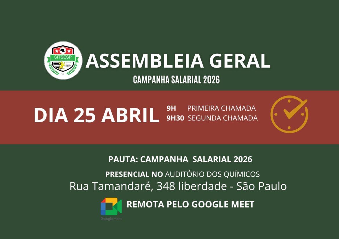 O SITSESP convoca todos os servidores e servidoras da Fundação CASA para participarem da Assembleia Geral Extraordinária da Campanha Salarial 2026.