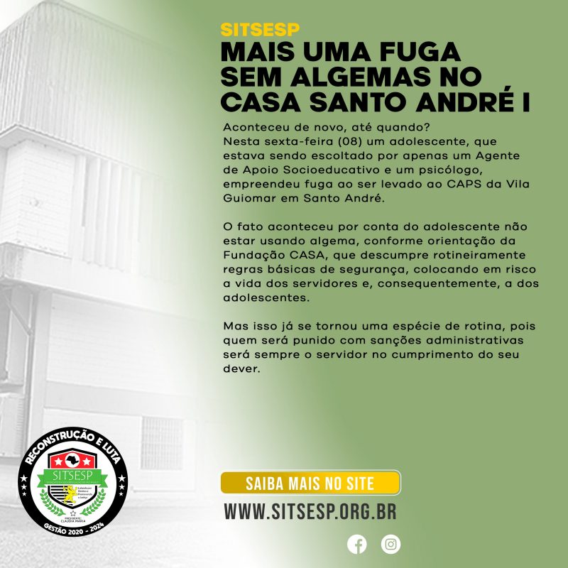 SITSESP INFORMA | MAIS UMA FUGA SEM ALGEMAS NO CASA SANTO ANDRÉ I